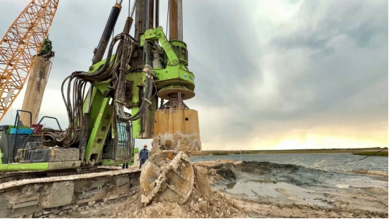 項目面臨復(fù)雜苛刻的地質(zhì)挑戰(zhàn):需在極端“上軟下硬”地層(11米松散回填層、10米強流動性沙層與流沙層、8米軟塑狀泥層,底部為2米厚堅硬砂巖)中,高效、高質(zhì)量地完成直徑1.5米、深度31米的橋梁樁基施工。傳統(tǒng)工藝在此類復(fù)雜條件下極易引發(fā)塌孔、縮徑等嚴(yán)重問題。面對如上嚴(yán)苛工況,泰恒基礎(chǔ)依托母公司泰信機械強大的技術(shù)研發(fā)底蘊和設(shè)備保障能力,制定了科學(xué)嚴(yán)謹(jǐn)?shù)氖┕し桨?。項目成功?yīng)用了泰信機械研發(fā)制造的高性能卡特彼勒底盤旋挖鉆機,并創(chuàng)新性地采用了13.5米超長護筒配合振動錘實施全護筒鉆進技術(shù)。這一由泰信機械技術(shù)體系支持的先進工藝,有效穿透了巨厚流沙層,完美解決了孔壁穩(wěn)定性難題,確保了成孔精度、施工安全及最終樁基質(zhì)量,為整個橋梁工程的順利推進奠定了最堅實的基礎(chǔ)。項目的高效實施,充分展現(xiàn)了泰信機械產(chǎn)品在應(yīng)對全球復(fù)雜地層時的卓越適應(yīng)性和可靠性。