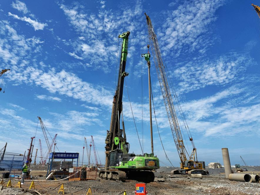 近日,江蘇泰信機械股份有限公司(以下簡稱“泰信機械”)研制的卡特彼勒底盤旋挖鉆機KR360C正助力全球最大海上機場-大連金州灣國際機場工程項目建設(shè)。作為國家 "十四五" 重點工程,該項目采用離岸式人工島建設(shè),填海形成陸域面積達 20.29 平方公里,建成后將擁有兩條遠(yuǎn)距跑道、50 萬平方米航站樓及 299個機位,預(yù)計 2035 年實現(xiàn)年旅客吞吐量4300萬人次、貨郵吞吐量55萬噸、飛機起降32.8萬架次目標(biāo)。